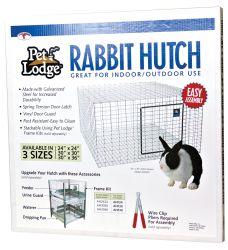 This hutch is strong, durable, and rust resistant for indoor or outdoor use. Excellent for rabbits, hamsters, guinea pigs, chinchillas, ferrets, gerbils, and other small animals. Made of chew-proof, easy-to-clean galvanized steel wire mesh. Door is surrounded by protective vinyl guards, with spring-tension door latch. Easy assembly required; wire clips are included. Use Pet Lodge Wire Clip Pliers (Item No. ACP2, sold separately). Hutch is stackable up to four high when used with the Pet Lodge Rabbit Hutch Frame Kit (Item No. AHFK24, sold separately). Dropping pan not included.
