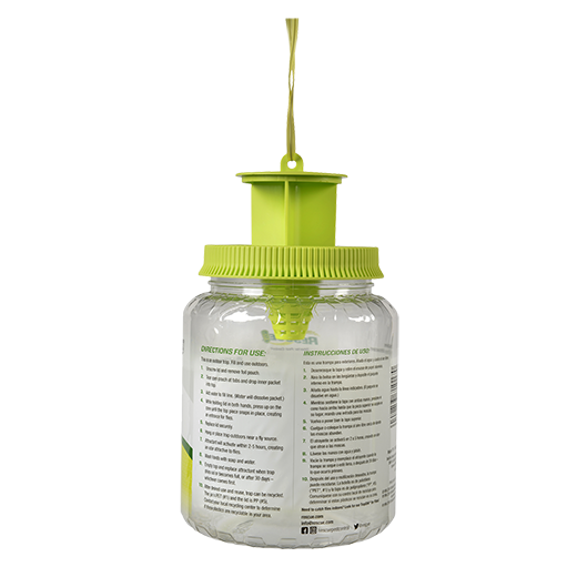 The trap comes with a water-soluble pouch of powder attractant. When the jar is filled with warm water and the trap is placed outdoors, the attractant dissolves and activates quickly. Simply replace the used attractant with a refill packet to allow this trap to be reused again and again.
