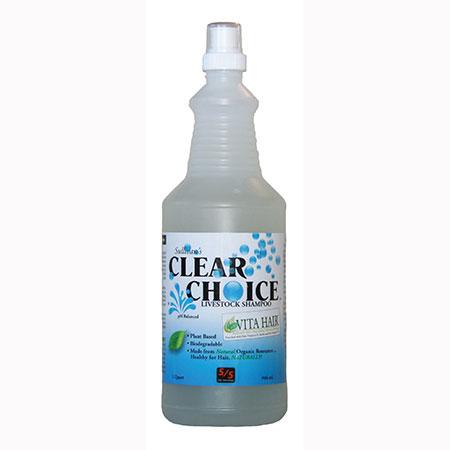 The ultimate livestock shampoo that is naturally healthy for hair. Clear Choice is formulated with the purest grade of nat-urally organic, plant based resources that are pH balanced for the sensitive skin and hair of livestock . This bio-based sur-factant technology attaches to dirt and pulls it away from the hair and skin for superior cleaning. More importantly, being natural, it does not contain any harsh invasive detergents such as dish soaps, abrasives, petroleums, or solvents which can be irritating and strip the natural oils from your animal’s hair and skin. Fortified with the VITA HAIR™ nourishing vitamin package to stimulate faster hair growth and encourage skin health. Recommended for all livestock.